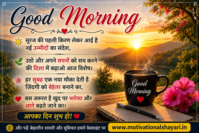 рдЖрдЬ рдХреА рд╕реБрдмрд╣ рдЖрдкрдХреЛ рджреЗ рдирдИ рдКрд░реНрдЬрд╛ рдФрд░ рдирдИ рдкрд╣рдЪрд╛рди, рд╣рд░ рдХрджрдо рдкрд░ рдорд┐рд▓реЗ рд╕рдлрд▓рддрд╛ рдФрд░ рдкреВрд░рд╛ рд╣реЛ рдЖрдкрдХрд╛ рд╣рд░ рдЕрд░рдорд╛рдиред ЁЯМ╝ Good Morning